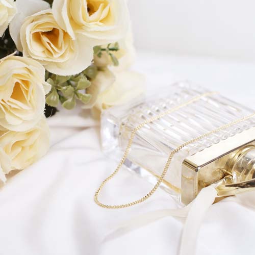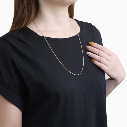 高級素材である、18金(K18)を惜しみなく使用した、気品あふれるチェーン。華やか過ぎない、洗練されたデザインのチェーンは、お持ちのどんなペンダントトップにも合わせやすく、普段の装いをぐっとエレガントに引き立ててくれます。