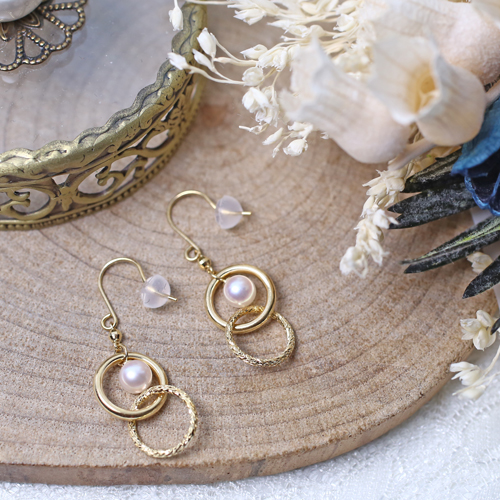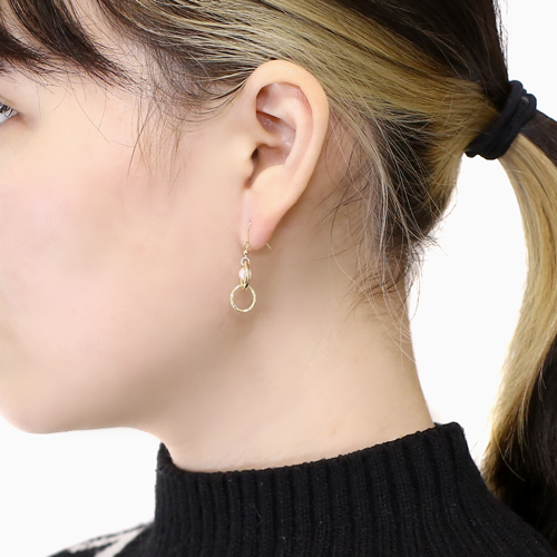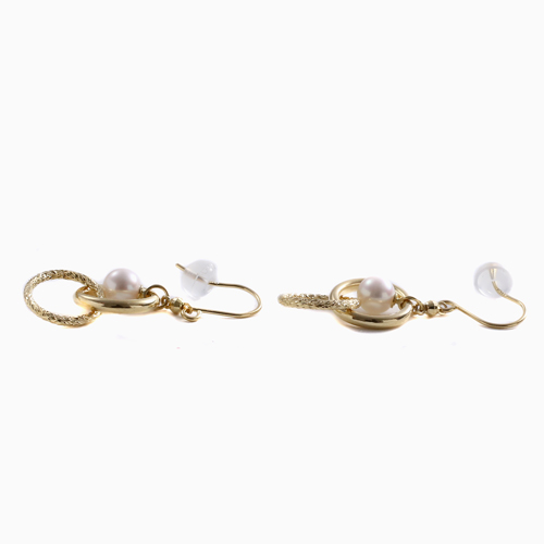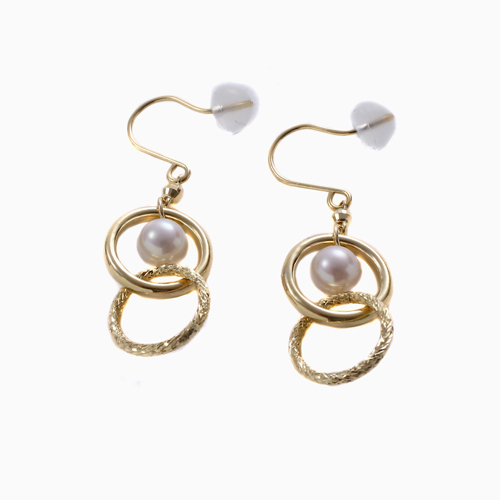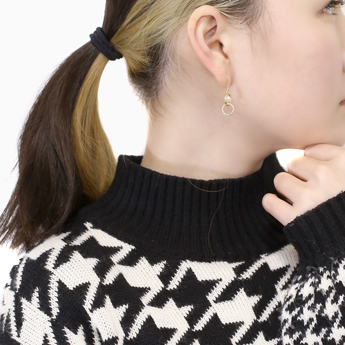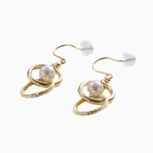 18金 K18 ピアス ダブルリングデザイン パール付き フック式 4808-UK23