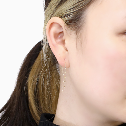 肌馴染みの良いイエローゴールドのかわいく揺れるアメリカンピアス!!