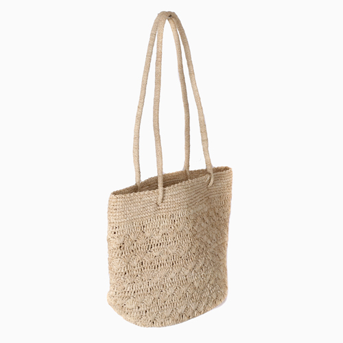 パリ生まれのデザイナーが手掛けるかごバッグ「IVAHONA」の、軽やかさと繊細な編み目が魅力のラフィア100%素材かごバッグ。バッグの口が広く荷物の出し入れがしやすく、見た目以上に収納ができます。細かく丁寧に編み込まれ、手馴染みも良く、電車や人ごみでもあまり気にしなくていいのもうれしいです。バッグ自体が軽量なのもGOOD♪色もナチュラルとどんな服装にも合わせやすく、水着やビーチサンダルと組み合わせてもオシャレですのでリゾート地でも大活躍すること間違いなしです!!素材の性質上、海水の付着、衣類のひっかけ等には十分ご注意下さい。