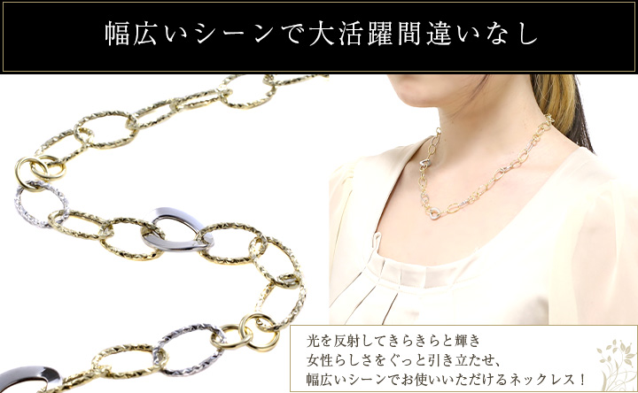 ツーカラーデザイン18金イエローゴールドとホワイトゴールドがエレガントなネックレス。 |
