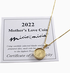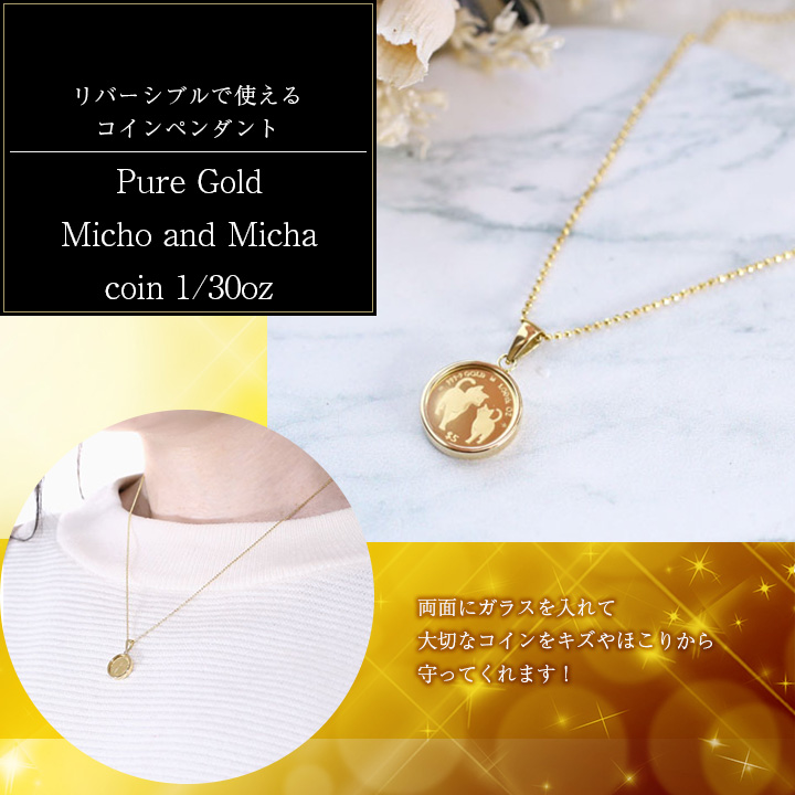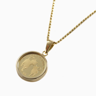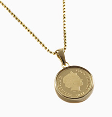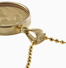 | 素材 | ・コイン(24金 1/30オンス約1g) ・枠(18金両面ガラス付) ・チェーン(シルバー925ゴールド仕上げ) |