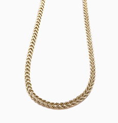 高級素材である、18金(K18)を使用したイタリアでは定番のデザインのパイプロープ。華やか過ぎない気品ある艶消し仕上げのデザイン。ボリュームがあるのに軽い着け心地が人気の秘密です。もちろんそのままでも、またお持ちの他のチェーンとのコーディネートと、普段の装いをぐっとエレガントに引き立ててくれます。