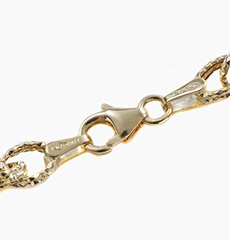 刻印入り引き輪近くのパーツに、素材と品質の証明をする刻印「750/ITALY」が刻まれています。 |