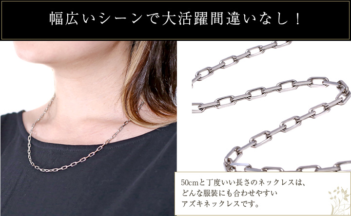 50cmのゆとりのある男女兼用サイズで、重ね着け用のチェーンとしてもお使いいただけます。