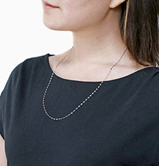 60cmのゆったりサイズのチェーンは、留め具を外さずに頭からかぶれるので、