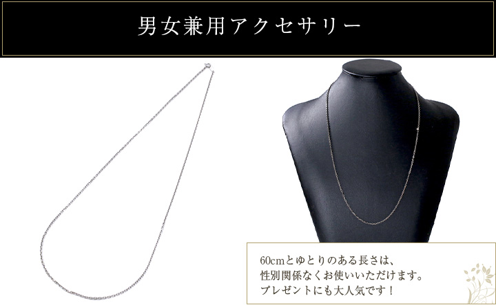 60cmのゆったりサイズの男女兼用4面カットアズキチェーンは、着け心地も抜群です。