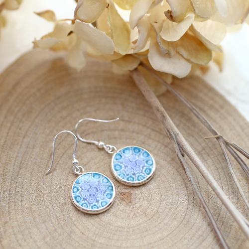 【クリックポスト便】イタリア製 ミレフィオリ ピアス 14mm SV925 4969-GO23