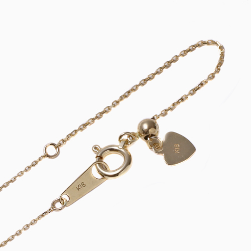 こちらのお店のネックレスを見ていた時、丁度セールになっていて細い18金ネックレスが欲しいかったのと、スライドチェーンで便利そうなので購入しました。小さいトップにピッタリでとても綺麗で長さ調節も出来てとても満足です。