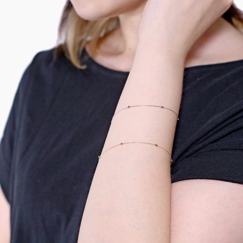 高級素材である、18金(K18)を惜しみなく使用した人気のアズキタイプチェーンに、たくさんのきらめくミラクルワンダーカットをステーションに配した、おしゃれでかわいいデザイン。しかも、シリコンボールで16cmから20cmまでのお好みの長さに調整できます。別売りのプラチナ素材と長さを微妙に変えて2連としてや、お持ちのオシャレウォッチなどとの重ね着けにもお勧めです。プレート部分には、「K18(刻印)」が有り、素材と品質の良さも証明されています。高価なゴールドをたっぷりと使用し、デザイン性にも評判の高いかわいいステーションのブレスレットが大変お買い得です!!