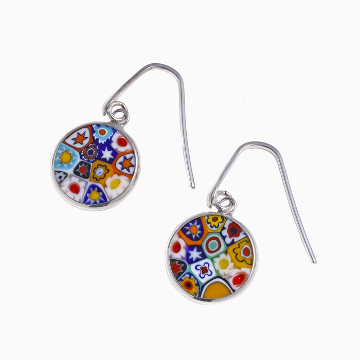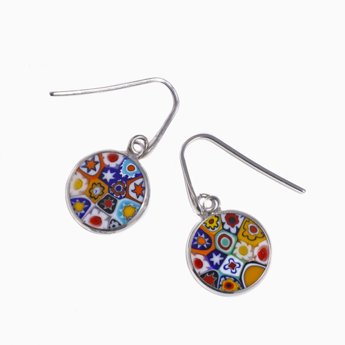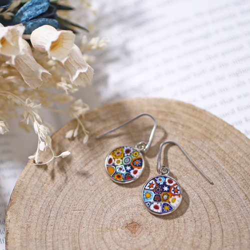イタリアのガラスの島と呼ばれるムラーノ島で、熟練した職人が一つ一つ丁寧に手作りしているハンドメイドピアスです。 色合いの美しいミレフィオリのデザインをシルバー925とベネチアンガラスで組み合わせたとっても素敵なアクセサリー!手作りのため、まったく同じものは2つとなく、世界にたった一つのあなただけのピアスといえます。 熟練職人が手で仕上げたベネチアンガラスのミレフィオリのデザインです。 これからの季節、プレゼントにもぴったりですよ。こんなに素敵なべネチアンガラスピアス、ぜひお使いいただきたくて、お値段も本当にギリギリまで抑えて、お求めやすい価格となっております!ご自分へのご褒美や、お母様への贈り物、ご友人、各種贈り物にも大変人気です。
