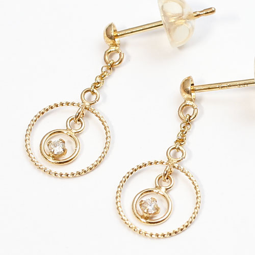 0.01カラットのダイヤモンドが普段使いしやすい大きさで、どんなコーディネートにもしっくり馴染み、毎日だって着けたい定番ピアスです!揺れるタイプでありながら、キャッチ式のピタッと感が安心!また、上品なアンティーク調のトレンドをおさえたデザインなのでプレゼントにも喜ばれます♪さりげない輝きで大人のおしゃれさをアピール!デイリーにはもちろん、パーティやニ次会の席にもおすすめです!大切な人へのプレゼントにも喜んでいただける逸品です。