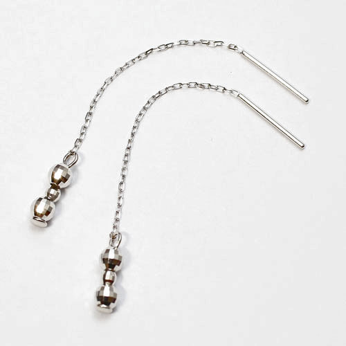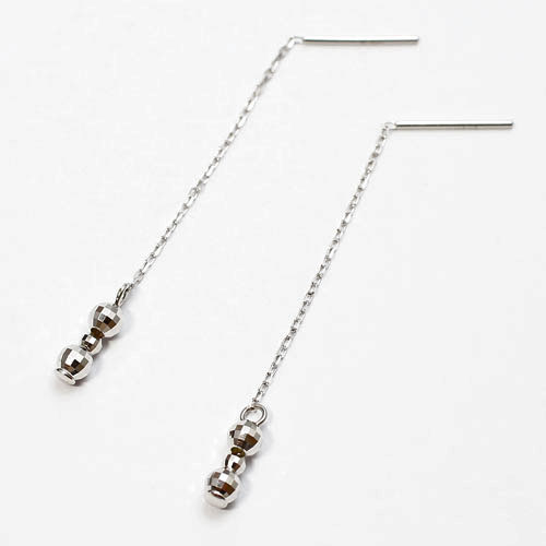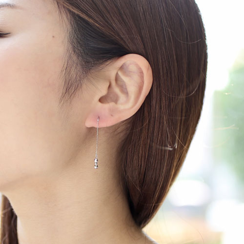 ポストにキャッチを着けるとロングタイプに、ポストからチェーン部分まで耳に通すとショートタイプになる2wayピアス!透明感を感じさせる小豆チェーンと、キラキラと光って揺れるミラーボールが、ラグジュアリーな印象になります。宝石が付いていないシンプルなデザインだからこそ、シーンを選ばずお着けいただけ、プレゼントにも喜ばれます♪さりげない輝きで大人のおしゃれさをアピール!お持ちのネックレスやリングなどと合わせやすく、デイリー使いまちがいなしです!デイリーにはもちろん、パーティやニ次会の席にもおすすめです!大切な人へのプレゼントにも喜んでいただける逸品です。
