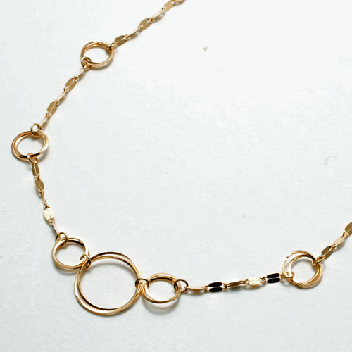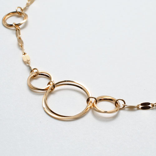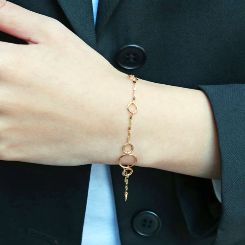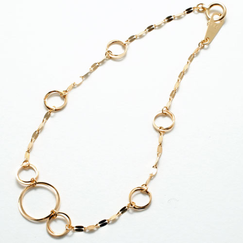 高級素材である、18金イエローゴールド(K18)を惜しみなく使用した、きらきらサークルブレスレット。