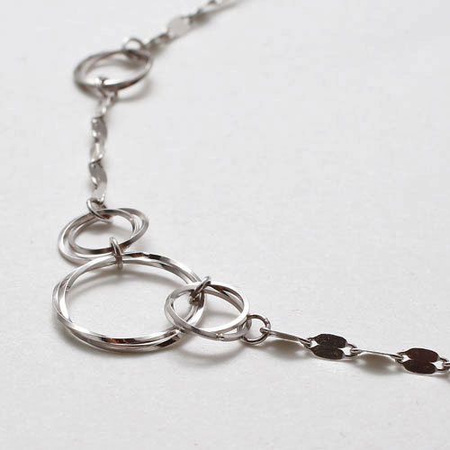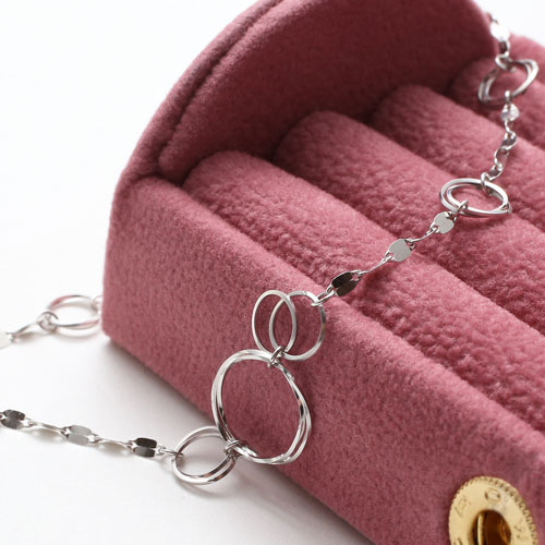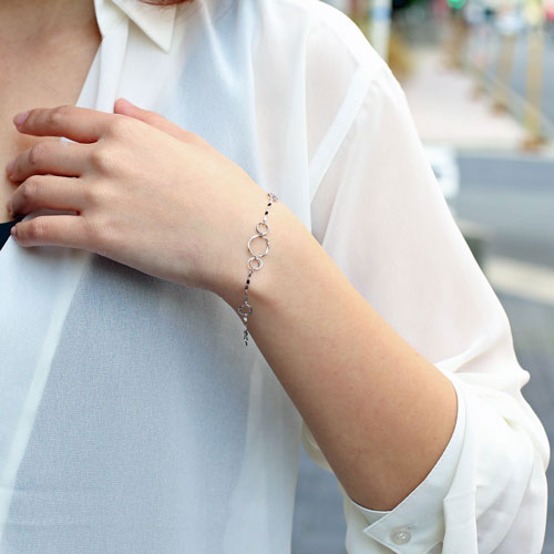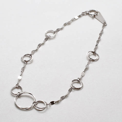 高級素材である、18金ホワイトゴールド(K18WG)を惜しみなく使用した、きらきらサークルブレスレット。