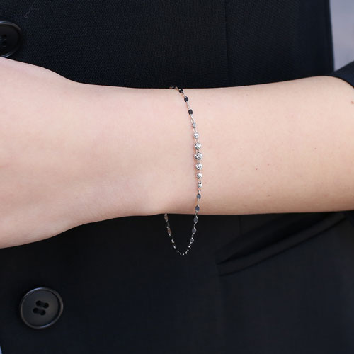 高級素材である、18金ホワイトゴールド(K18WG)を惜しみなく使用した、きらきらペダルブレスレット。