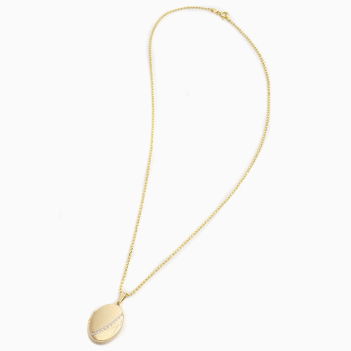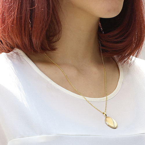 シンプルなオーバルタイプロケットペンダント。9金(375)素材との組み合わせは肌に馴染みやすく、合わせる洋服によってキュートな感じにもシックでクラシカルな雰囲気にもなります。カットを施したような柄が高級感を醸し出しています。裏側は艶消し加工を施していますので傷が目立ちにくく、その日の気分で使い分け。大切な人、大好きなペットの写真をこっそり入れて、お洒落にロケットペンダントを楽しんでください。