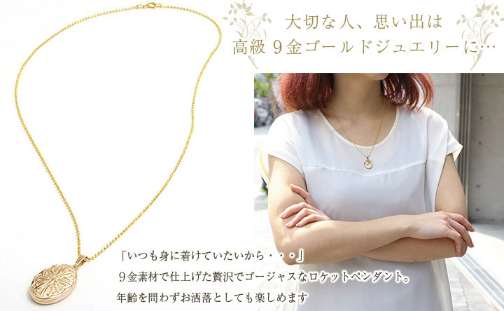 大切な思い出だからこそ、良い物に入れたいけど、お洒落としても楽しみたい!そんな方へお勧めの高級9金ロケットペンダントが登場しました。オーバルのシンプルな形でさらに落ち着いたデザインが施されてあります。男女問わずお使い頂けますので、普段使いはもちろん!結婚式やパーティーなど華やかなシーンのアクセサリーにも最適です。