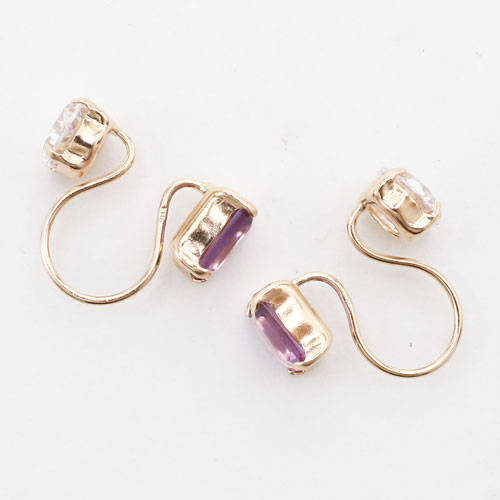 ピアスホールがなくても装着できるノンホールピアスが登場☆着用場所もさまざまで、アレンジしやすいのも特徴です。天然石のアメジストとキュービックジルコニアのリバーシブルタイプ。ピアスをしているように見え、耳元でさりげなく煌めき、クラス感のあるコーディネートに。10金でありながらこの価格は、なかなか見つからない超お買得品。デイリーにもオケージョンスタイルにもお使い頂けるシンプルで女性らしいデザインです。イヤリング特有の締め付け感もなく、多少のサイズ調節が可能なフリータイプ。年齢やシーンを選ばないアクセサリーはプレゼントにも最適です♪