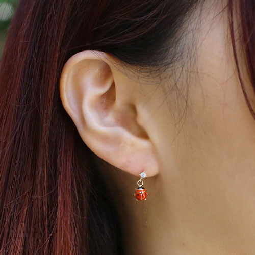 18金を贅沢に使用したキュービックジルコニア付てんとう虫ピアス。ユニークで遊び心があり、鮮やかな赤色を使用しておりますが、ハードになり過ぎず、コーディネートにさりげない個性を与えてくれます。