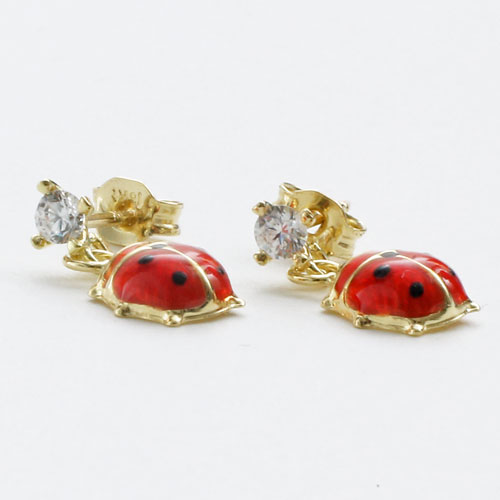 18金 ピアス キュービックジルコニア てんとう虫 K18YG キャッチ式 イタリア製 5198-YG16