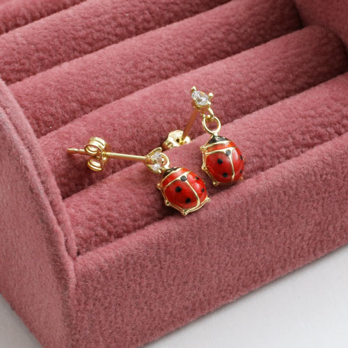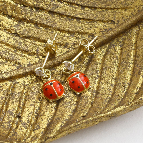 18金を贅沢に使用したキュービックジルコニア付てんとう虫ピアス。ユニークで遊び心があり、鮮やかな赤色を使用しておりますが、ハードになり過ぎず、コーディネートにさりげない個性を与えてくれます。素材には18金を贅沢に使用し、ポスト部分には「18KT ITALY」の刻印が施されており、シンプルでありながら、見えない部分にも手の込んだこだわりを感じます。揺れるタイプでありながら、キャッチ式のピタッと感が安心!別売りでネックレスもご用意しておりますので、プレゼントにも喜ばれます♪デイリーにはもちろん、パーティーやニ次会の席にもおすすめです大切な人へのプレゼントにも喜んでいただける逸品です。