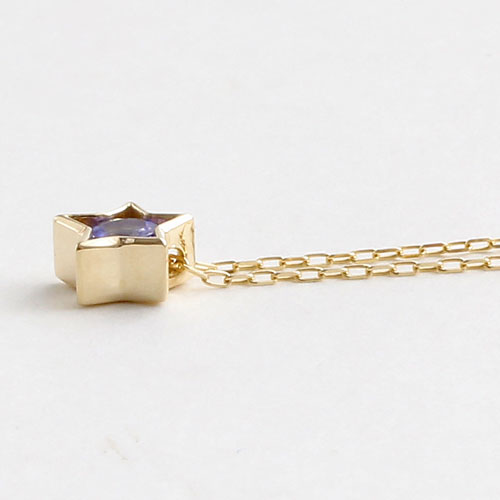 12月の誕生石、タンザナイトを使用したスターモチーフの可愛いプチペンダントが登場しました☆ チェーンの素材にも天然石の色味に合わせた10金イエローゴールドを使用!小さめで華奢だけれども主張し過ぎない存在感!そのままシンプルにお使い頂いても、別のチェーンやペンダントと合わせて重ねづけしてもOK! どんなスタイルにも合わせやすいので、普段づかいのジュエリーとしても大活躍すること間違い無し♪ 流行や年齢に関係なく、きっと長く大事にお使い頂けます。タンザナイトは、知性や意識を高める石で、意識の次元をあげて、物事を成功に導く石として効果的で、お守り代わりとしても身に着けられそうですよね♪プレゼント包装も無料で対応しておりますので、大切な方への贈り物にもおすすめです♪