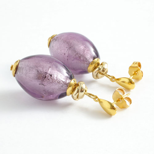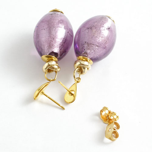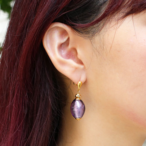 ベネチアングラス ピアス (オーバル・パープル) イタリア製 5270-EV16
