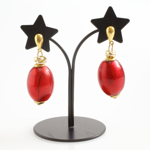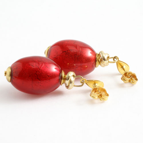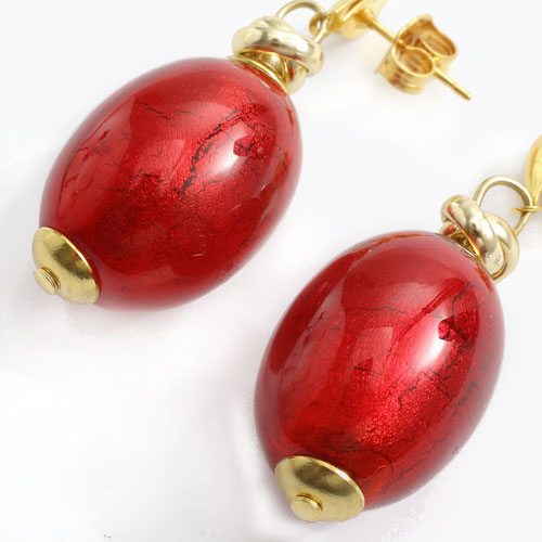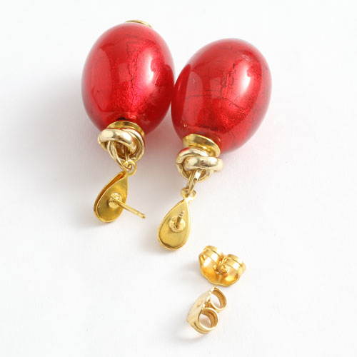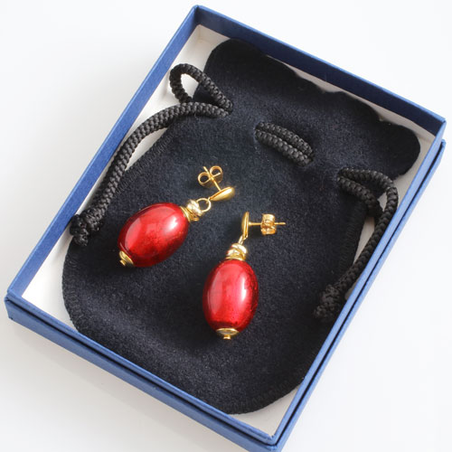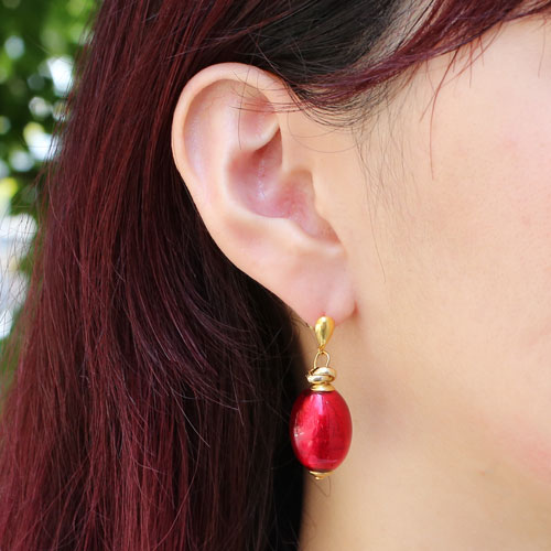 ベネチアングラス ピアス (オーバル・レッド) イタリア製 5271-EV16