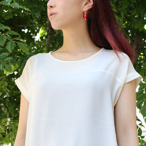 そのベネチアンビーズガラスを使って、ミラノで人気の若手アクセサリーデザイナー・キアラ(CHIARA)がおしゃれでわくわくする感性のピアスを作りました。レッド系の色を配した落ち着いた大人の色使いは日本の女性に気軽に着けてもらえるように考えたそうです。