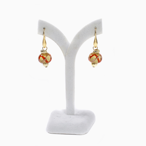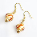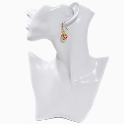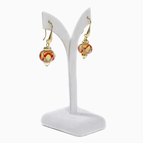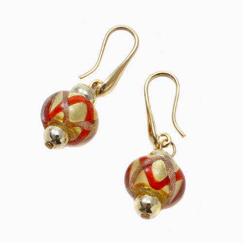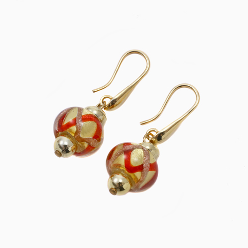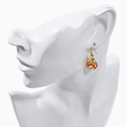 そのベネチアンビーズガラスを使って、ミラノで人気の若手アクセサリーデザイナー・キアラ(CHIARA)がおしゃれでわくわくする感性のピアスを作りました。ゴールド系の色を配した落ち着いた大人の色使いは日本の女性に気軽に着けてもらえるように考えたそうです。