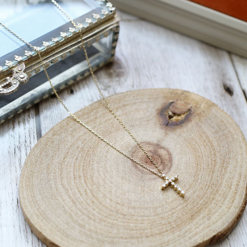 【どんな服装にも合わせやすいイエローゴールド定番クロス】