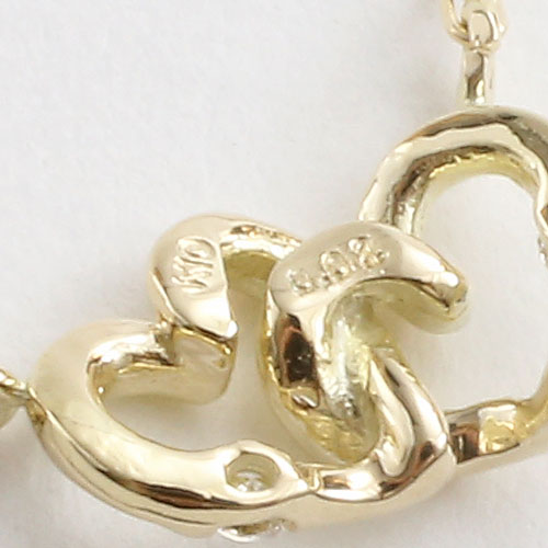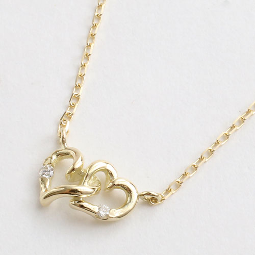 10金 10K K10YG ネックレス ペンダント ダブルハート 天然石 ダイヤモンド 小豆チェーン 5314-PG16