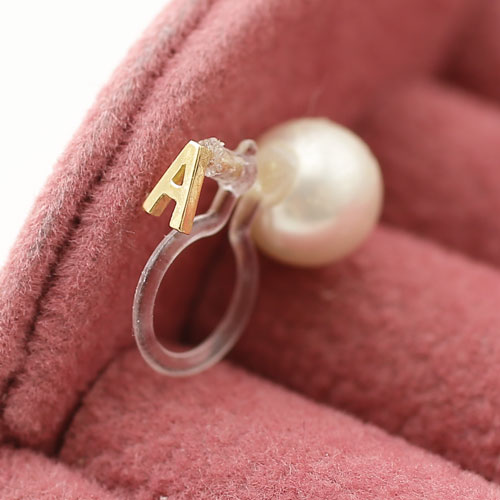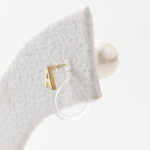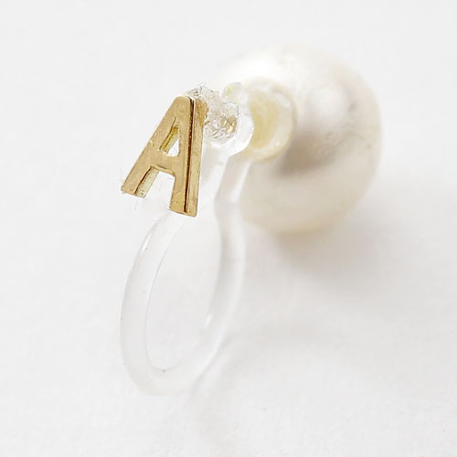 18金 イニシャル A インビジブル 片耳 イヤリング 6mm珠 貝パール 挟み込み式 5359-EG16