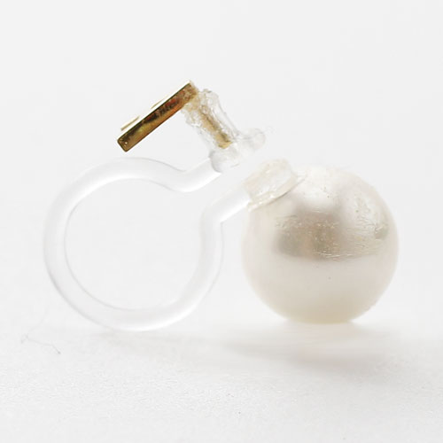 イニシャル部分には18金素材を使用し、約6mmの貝パールが可愛らしく配置されています。 はめ込み部分の色は透明色でインビジブルタイプなので、ピアスのような感覚でオシャレを楽しめます☆