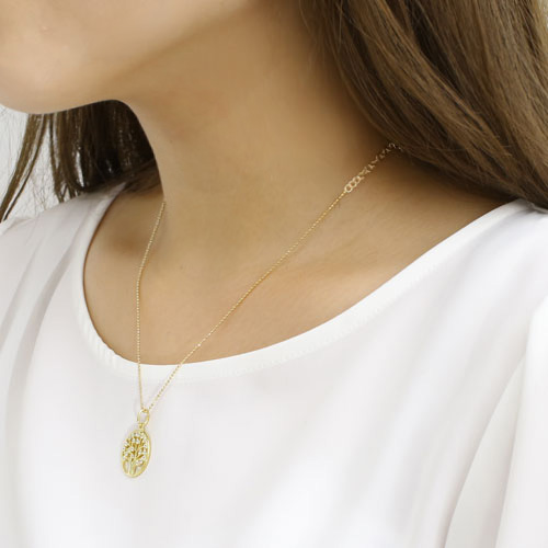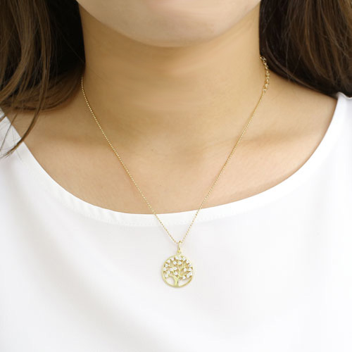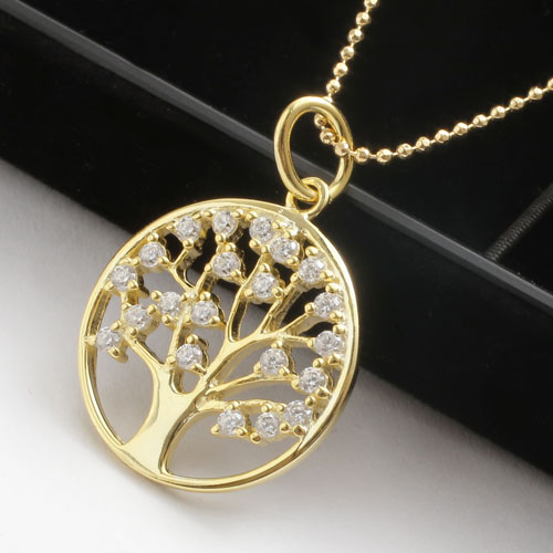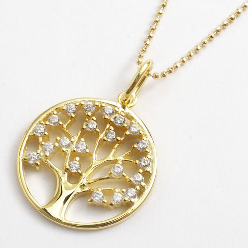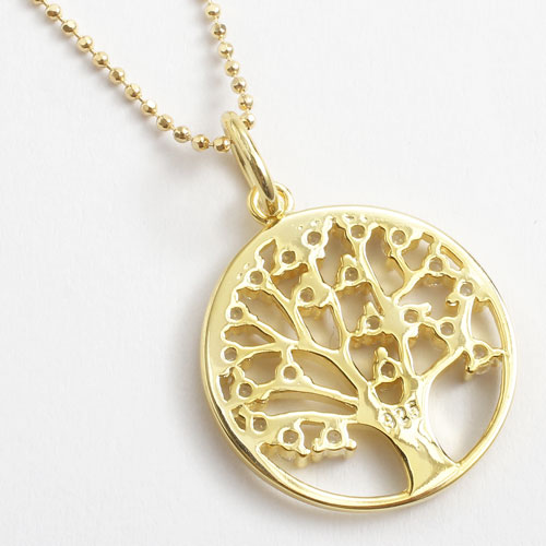 シルバー ゴールドメッキ ペンダント ツリーオブライフ カットボールチェーン付き 5384-PG16