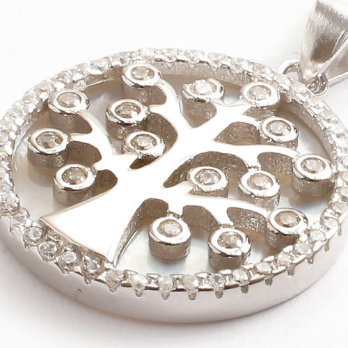 シルバーと白蝶貝の綺麗でオシャレなツリーモチーフペンダント。トップがキラキラと輝き、お顔周りを輝かせてくれます。