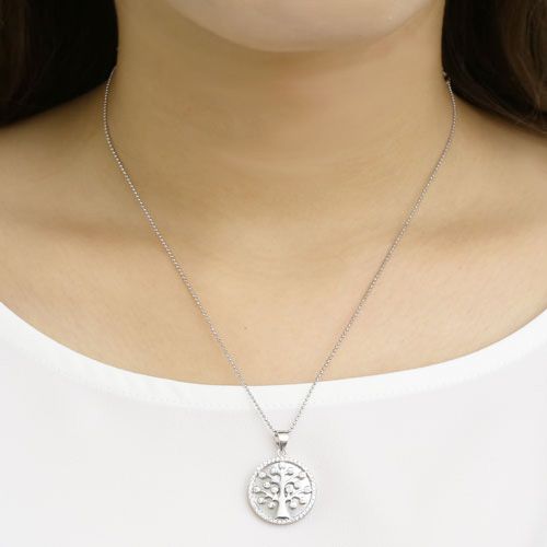 シルバー ペンダント ツリーオブライフ ジルコニア カットボールチェーン付き SV925 5385-PG16
