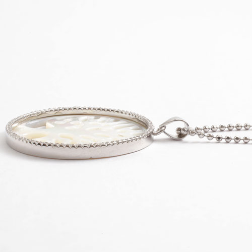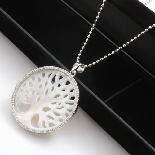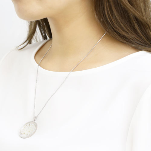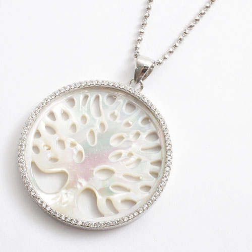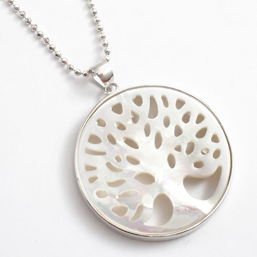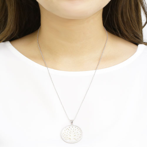 シルバーと白蝶貝の綺麗でオシャレなツリーモチーフペンダント。大きめのトップがキラキラと輝き、お顔周りを輝かせてくれます。