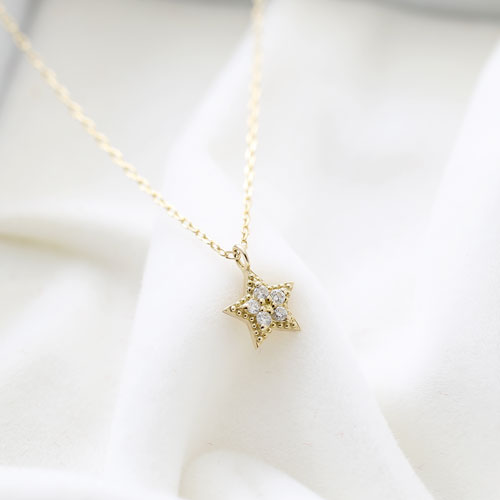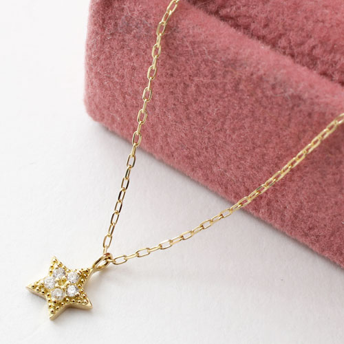 10金 ダイヤモンド 星 ダイヤモンド ペンダント アズキチェーン 5393-PG17