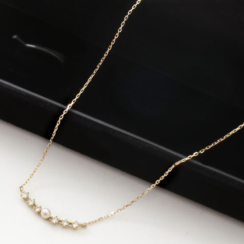 | 素材 | ・小豆( アズキ)チェーン ・10金(K10YG)イエローゴールド ・ダイヤモンド「0.08ct」 ・淡水パール |