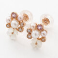 日本製 K10PG ピアス ダイヤモンド パール フラワー 5404-PG17