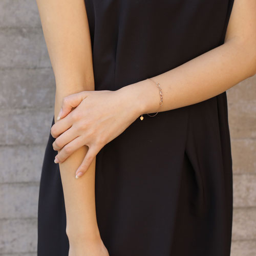ローズクォーツを使用したブレスレットが登場しました☆ チェーンの素材にも10金ピンクゴールドを使用!小さめで華奢だけれども主張し過ぎない存在感!
