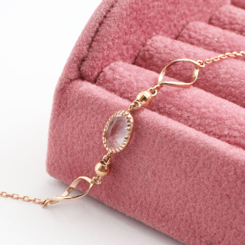 K10PG天然石ブレスレット!!ローズクォーツを使用したブレスレットが登場しました☆ チェーンの素材にも10金ピンクゴールドを使用!小さめで華奢だけれども主張し過ぎない存在感!そのままシンプルにお使い頂いても、他のブレスレットやリングと合わせて重ねづけしてもOK! どんなスタイルにも合わせやすいので、普段づかいのジュエリーとしても大活躍すること間違い無し♪ 流行や年齢に関係なく、きっと長く大事にお使い頂けます。お好きなケースも選べ、プレゼント包装も無料で対応しておりますので、大切な方への贈り物にもおすすめです♪
