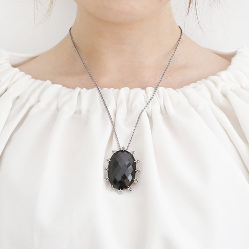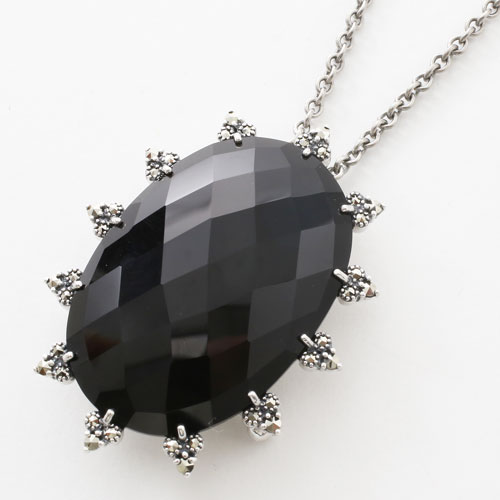 タイ・バンコクにあるプランダジュエリーは3本の指に入るジュエリー生産量を誇り、世界中に輸出しています。最上な教育を受けた優秀なデザイナーたちが自らの感性を自由に表現し、他社にない魅力的なジュエリーを生み出しています。厳格なカラーストーンの選別と品質管理が世界一厳しい日本でいつまでも愛されるジュエリー。ストーンにはブラックオニキスを使用。首元から抜群の存在感を放つペンダントは、55cmのロングレングスのチェーンと合わさることでエレガントな印象に♪さらにマーカサイトとSILVER925の美しい光沢でよりいっそう輝いてくれます。