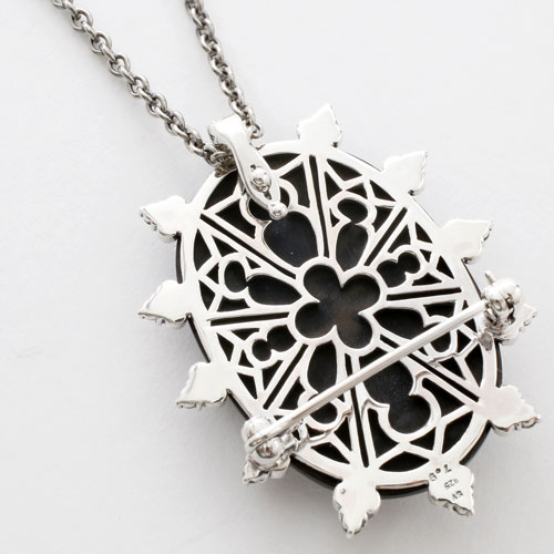 シルバー タイ製 ペンダント兼用ブローチ 天然オニキス マーカサイト 5429-PS17