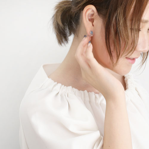 耳元からさりげなくオーロラに輝くその姿は、シルバーカラーとの相性が抜群♪