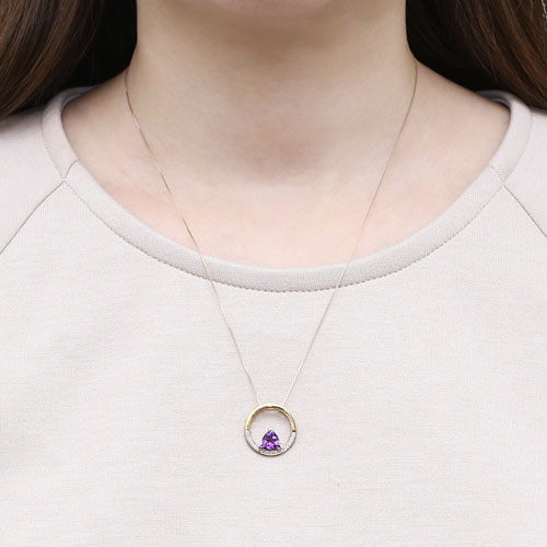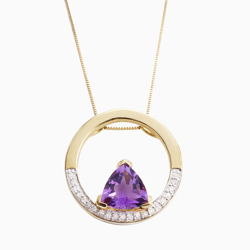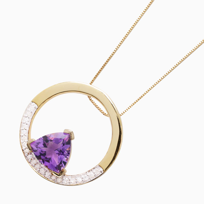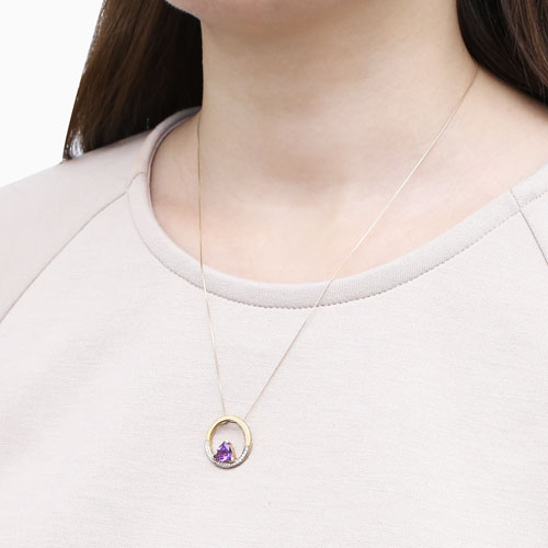 【送料無料】【タイ製/プランダ/PRANDA社】K10/10金/イエローゴールド 天然石/アメジスト/ダイヤモンド 誕生石/2月 サークル ペンダント ベネチアンチェーン 5447-PS17