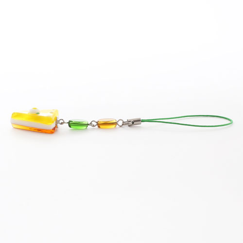 レモンケーキモチーフのかわいいストラップ。財布に付けたり、キーチェーンとしてもお使いいただけます。