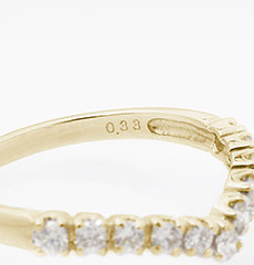 ダイヤモンド合計0.33ctを使用した優美なリングハーフダイヤのデザインリングは光を反射しきらきらと美しく輝かせてくれます。上品なデザインのリングは指を長く美しく魅せてくれるので女性への贈り物にもおススメです! 派手すぎない落ち着いた色合いの18金にきらきらと輝くダイヤモンドはデザイン性にもこだわり、毎日身ね着けたくなるジュエリー 【リングに無料で刻印をお入れいたします】名前、イニシャル、大切な日等を刻むことのできるダイヤモンドリングは、この世に一つしかない特別なリング【筆記体】と【ブロック体】上記のいずれかの字体を選択し、お買い物かごに入れて頂いた後備考欄へご希望の刻印内容をご記載ください。